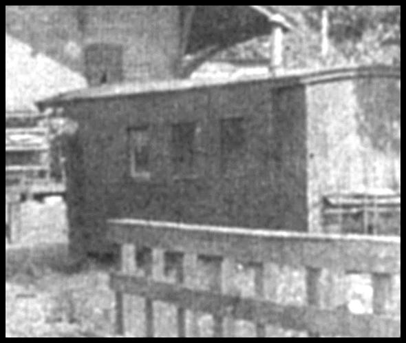 Walt K. spotted this one also. It’s a much-magnified detail taken from an overall view of the Ellenville station. This trackside shanty clearly started life as a short, possibly 8-wheeled, caboose having three windows on its side. Its wheels/trucks have been removed, and the near end-platform has been enclosed to provide more interior storage space beneath the roof. This is an excellent candidate for being a grounded ex-Midland 8000-series caboose. Or, since this is Ellenville, perhaps it’s just an ex-Erie caboose. Or, maybe it’s both – after all, the Midland had to originally get its caboose cars from somewhere….