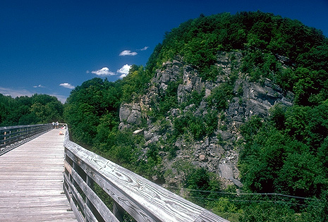 IMG005 - No, it's not Orrs Mills Trestle brought back to life, but the old Rosendale Trestle of the Wallkill Valley Railroad. Abandonded by Conrail in the early 1980s, this magnificent structure soars over 150 feet above the Roundout Creek, and is accessible from the east end. Half of the trestle has been turned into a public walkway. Believe it or not, the current owner would like to restore railroad service on the line...some day.