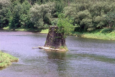 IMG0033 - This solitary stone bridge support bears witness to the vicious floods along the East Branch of the Delaware River that caused considerable havoc to the O&W more than once. It's actually a support for an old highway bridge.