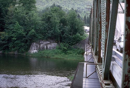 IMG0034 - This view alongside the county road bridge into Fishs Eddy is actually a look at an old O&W bridge across the Delaware River. The state converted the old grade by recycling it into a paved road, and this single-lane bridge remains the only way to get into Fishs Eddy from NY 17.