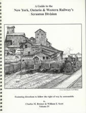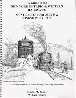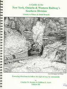 A Guide To The New York Ontario & Western's Monticello, Port Jervis & Kingston Division by Charle M. Breiner and William E. Scott - 90 pages with many photo's, maps, structure plans and drawings of the railroads Monticello, Port Jervis & Kingston Division. This street by street guide will help you navigate along the right-of-way pointing out the remaining points of interest as you travel along.................................................. $15.00 A Guide for Liberty to Sidney & Delhi Branch of the New York Ontario & Western Railway. The third auto tour guide by Charles Breiner and Willam Scott covering the upper part of the O&W's Southern Division. Station drawings, with maps and many photographs. 134 pages 8 1/2 x 11 on coated paper. Spiral bound.--------------------------------------------$15.00 A Guide for the Scranton Division of the New York Ontario & Western Railway. The fourth auto tour guide by Charles Breiner and Willam Scott covering Cadosia to Scranton. Station drawings, with maps and many photographs. 136 pages 8 1/2 x 11 on coated paper. Spiral bound.--------------------------------------------$20.00