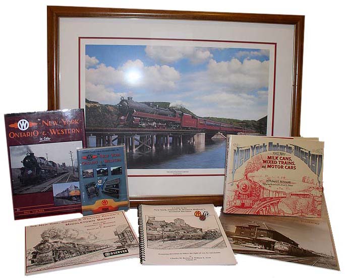 OBSERVER ISSUES "Ridin' the Rails - Passenger Equipment of the N.Y.O.& W. Ry." is the OWRHS 2007 Observer. This Observer is 202 pages, of text, photos, car diagrams and a spreadsheet format roster of O&W passenger cars from car No. 1 to No. 546; -- the last item being complete with disposition information as available. Soft Cover.............................................$30 Laminated Hard Cover.............$35 A Ride through the Countryside on the Syracuse & Chenango Valley Railroad is a story about the earliest days of the New York & Oswego Midland Railroad and its difficulties in building a planned route from Earlville to Syracuse. In 1866, the Midland vacated its plans to build the railroad along this corridor and adopted a route to Oswego via Oneida. The Syracuse & Chenango Valley Railroad was born two years later and eventually constructed its line along the route the Midland had earlier desired. Located nearly mid-way between Syracuse and Earlville was a tunnel and a heavy grade that only the Midland could have embraced had its mainline passed this upland countryside as originally planned. Soft Cover.............................................$30 Volume V " A Guide to the New York Ontario and Western Railway's Northern Division " is off the press and is available for purchase. The guide covers the railroad from Sidney to Munns on the main line, as well as the New Berlin Branch and Pecksport Loop. It contains 112 pages with over 78 photographs with maps and drawings to help follow the right of way of the "Old and Weary " . The final volume will cover the balance of the Northern Division from Munns to Oswego and include the Utica Division and Rome Branch. $20.00 THE NYO&W'S MIDDLETOWN BRANCH PART I CORNWALL TO BURNSIDE by Douglas J. Barberio. This in-depth 96 page book covers the southernmost portion of the O&W main line. Included are many track maps and photographs of all the stations along with operational information..........................................................................................................$20.00 Guide for Liberty to Sidney & Delhi Branch of the New York Ontario & Western Railway. The third auto tour guide by Charles Breiner and Willam Scott covering the upper part of the O&W's Southern Division. Station drawings, with maps and many photographs. 134 pages 8 1/2 x 11 on coated paper. Spiral bound.--------------------------------------------$15.00 MEMORIES OF POP AND THE O&W RAILWAY BY CLYDE R. CONROW & TRAIN CONTROL ON THE NYO&W RAILWAY BY ROBERT E. MOHOWSKI .......................................$15.00 GUIDE TO THE NYO&W RAILWAY'S SOUTHERN DIVISION - Cornwall to Liberty by Breiner and Scott. This definitive auto tour guide covers each station in detail with many maps and photos. The first of a new series of guides to the entire NYO&W. 98 pages, softbound, 81/2 x 11", coated paper, spiral bound. .............................................................$ 15.00 A Hill, A Branch, and the Pecksport Loop: The long awaited Observer publication by noted author, historian, and O&WRHS Trustee, John Taibi. This 96 page book covers the Northern Division of the NYO&W in the Randallsville-Eaton-Pecksport area, with emphasis on the important Pecksport Loop. ...............................................$20.00 THE FLYING DIESEL CORPS. - Newspaper article reprints and many never before published pictures ofthe Old Woman's unusual 1955 wreck in Hamilton, NY. Original artwork by Society artist Carl Ohlson. 24 pages. ............................... $ 5.00 THE MOUNTAINEER LIMITED: The initial six weeks' operation of the O&W's streamstyled train. Includes a reprint of the Middletown Herald article documenting the Mountaineer's inaugural run from Middletown to Cadosia. More of Carl Ohlson's amvork. 24 pages. ............................................................................ $ 5.00 THE Y-2's: One of our Motive Power Series issues. This 48-page issue is loaded with diagrams and pictures of these Heavy Mountains that handled the ponderous coal drags and fast freights. ............................................................... $ 10.00 ROSCOE-ROCKLAND: STEEL RAILS, SUMMERHOMES: Located at the confluence o fthe Beaverkill and Willowemoc streams, the twin villages of Roscoe and Rockland have attracted vacationers, fishermen and hunters for years. This 24-page photographic essay documents the O&W and the resorts in the area. ......................................................................................$ 5.00 The W's and W-2's: A Motive Power Series issue. 27 photos and many diagrams show details of the 2-8-0's evolution over four decades. Article on how to construct an HO model. Artwork by Carl Ohlson. 44 pages........................................................ $10.00 SUMMER HOMES ON THE MIDLAND. Exact reprint of an 1879 New York & Oswego Midland vacation guide describing towns and advertising the resorts along the line. "Rooms $5 per week" 38 pages....................................................................$4.00 May-Aug '94: SUMMER HOMES on the N.Y.O.& W. RAILWAY. Reprint of an 1881 O&W vacation guide. Greatly expanded version of the 1879 guide, with many lithographs and old advertisements. 84 pages. ..............................................................$ 8.00 SPECIAL - BOTH SUMMER HOMES (REPRINTS) for only...................................................................$ 10.00 Jan-Sep '91: MIDDLETOWN, HOME OF THE O&W AND THE O&WRHS. This 104-page issue is full of maps, photos, structure plans and text describing the facilities in the O&W's headquarters city. Includes histories of the O&W RHS and the Clemson Bros. building which now houses the Society's Archives. .........................................SPECIAL - Was $ 16.00 - Now $ 12.00 Ontario & Western Observer Volume 1. - Number 1, April 1941 published by the NYO&W containing contemporary advertising, railroad pictures, map of the O&W and O&W employee activities.........