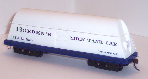The Borden Company, home of “Elsie the Cow ®”, built many creameries throughout upstate NY and New England and was an innovator in milk rail transportation. Perhaps its most distinctive creation was the “Butter Dish” milk tank car which began service during the Art Deco days of the 30’s. With its unique sloped streamlined design, the resemblance to a butter dish was obvious and hence the colorful nickname.